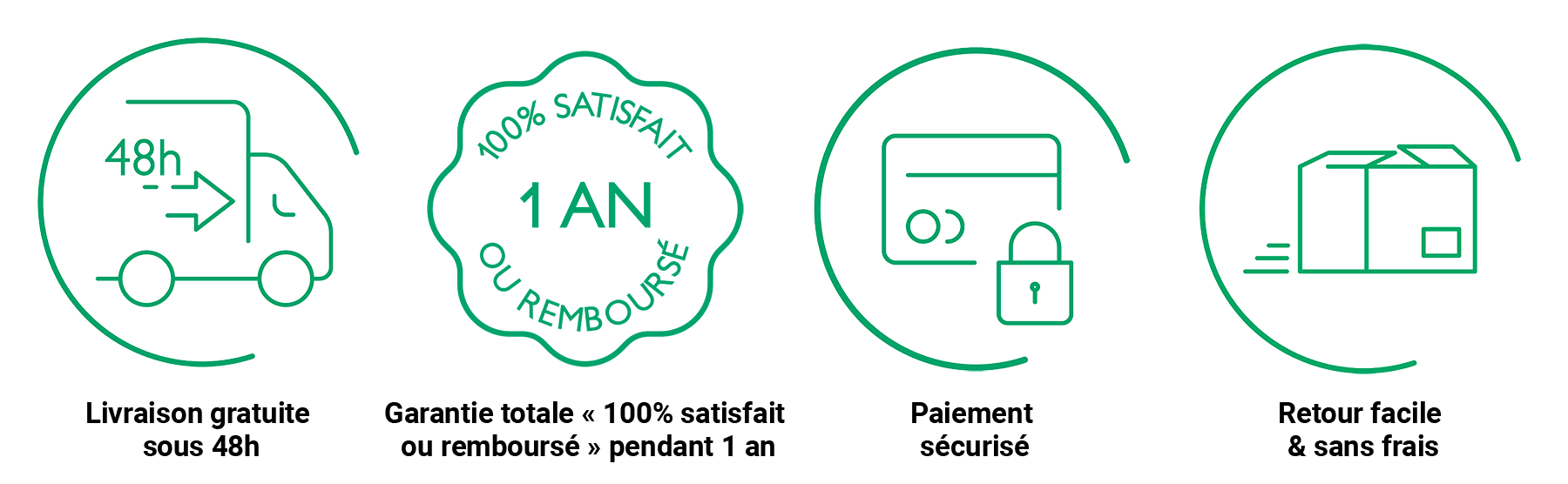 Dès que vous confirmez votre commande, elle est immédiatement transmise à notre service logistique pour être traitée dans les 24h (hors weekend). Une fois que votre commande est prête à partir, vous êtes prévenu par email et recevez un numéro de suivi Colissimo qui vous permet de suivre son bon acheminement jusque chez vous. Comptez ensuite 48h pour la livraison (sauf pour les DOM-TOM où le transport peut prendre jusque 7 jours).